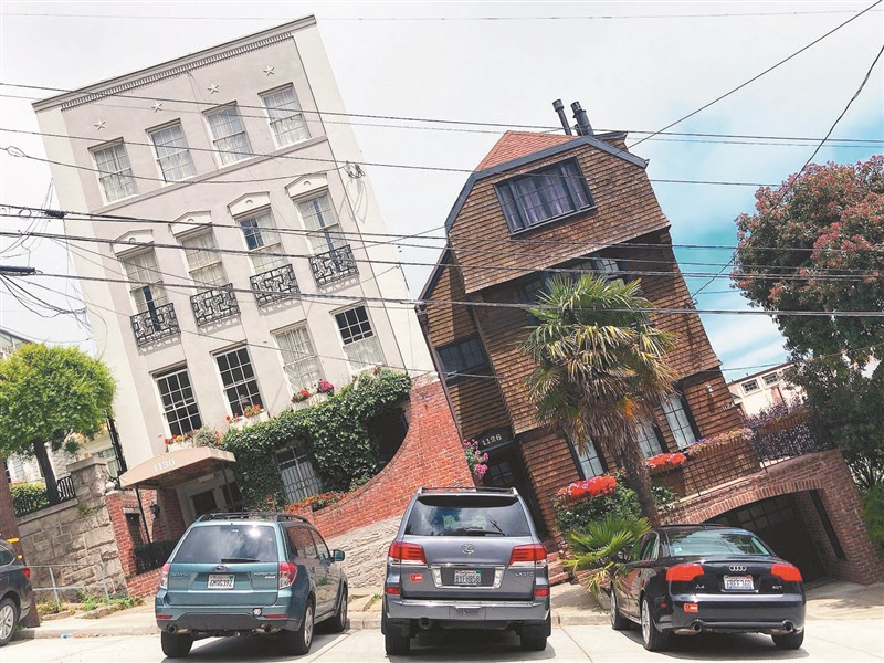 【本報綜合外電報導】你知道舊金山的街道有多陡嗎?旅居美國的部落客「鱸魚」分享一張費爾伯特街(Filbert Street)的照片,「在舊金山只要把街道當作水平面,就可以拍出電影《天能》(Tenet)的劇照,完全不需要動手腳」,圖中房子與停在街上的汽車形成明顯的斜角,彷彿下一秒房子就要倒塌,讓人看了直冒冷汗。
