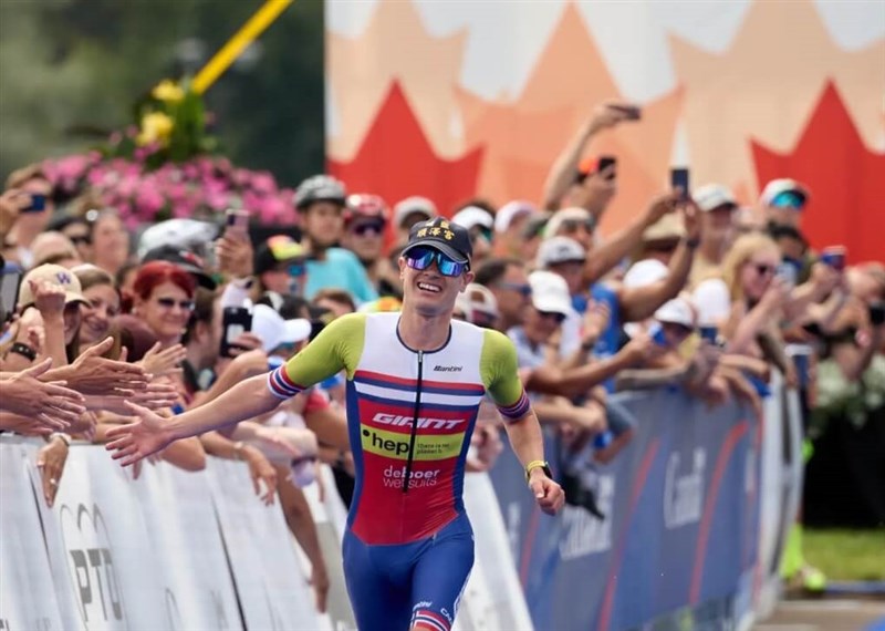 挪威三鐵選手艾登參加鐵人三項加拿大公開賽奪冠,艾登賽後受訪指出,頭上戴的順澤宮冠軍帽發揮作用。圖/instagram/gustav_iden