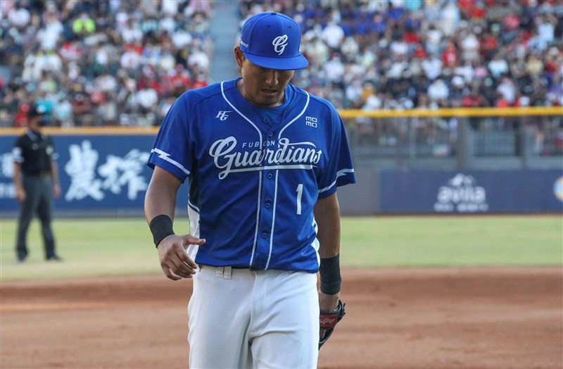 富邦悍將外野手林哲瑄23日在新竹球場因撲接外野飛球造成左肩關節唇破裂。圖/富邦悍將提供