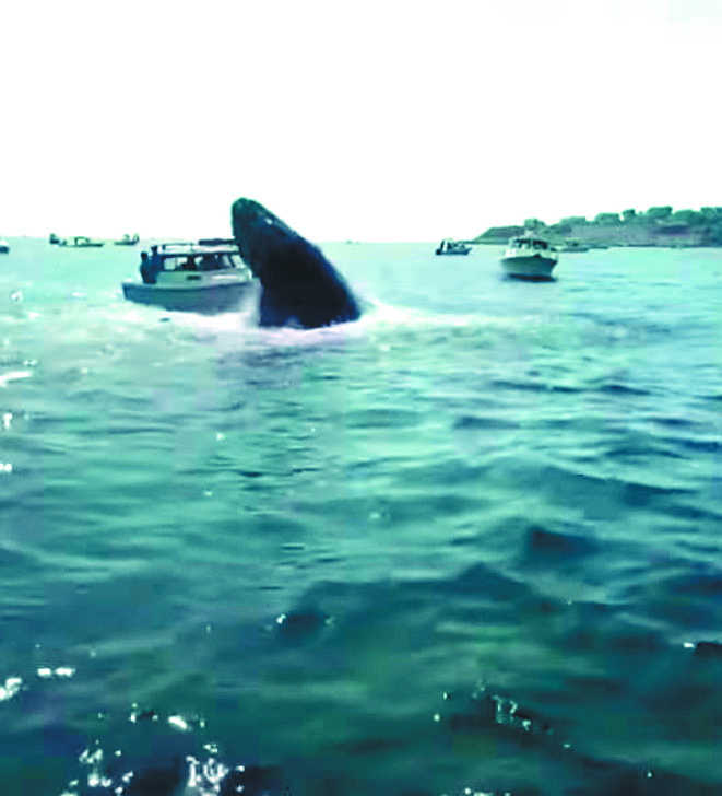 二十四日麻州濱海城鎮普利茅斯(Plymouth),當時有幾艘賞鯨船圍繞在這頭座頭鯨出沒的海面上。從民眾拍攝的畫面可以看到,這頭鯨魚的身體在躍出海面後,頭部猛然地撞上一艘十九英尺(五點八公尺)長的船上,然後才滑回到海面。牠的撞擊讓這艘船的船尾翹起來,隨即在海面上劇烈搖晃。