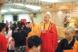 心定和尚為馬來西亞近二百位信眾主持皈依三寶典禮,大眾在自信滿滿的「能」回應聲中,發願皈依佛陀座下。