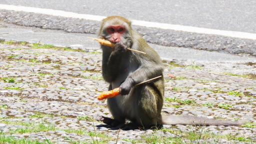 蘇家弘說,日前在塔塔加觀察拍攝台灣獼猴,看到一群猴子玩耍,許多遊客駐足觀看小猴及猴媽媽玩耍;中午12點45分在石山服務站,有名女位遊客拿整桶黑輪準備吃,竟整個猴群蜂擁撲向女遊客,搶食黑輪,遊客驚嚇大叫,黑輪被7隻猴子搶去吃,女遊客嚇得臉色蒼白,說回家要到廟宇收驚,所幸未被潑猴抓或咬傷。