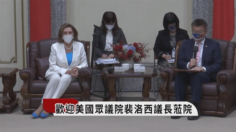 【本報台北訊】美國聯邦眾議院議長裴洛西(Nancy Pelosi)昨天晚間抵台訪問,今天上午8時47分拜會立法院;因立法院長游錫堃確診,由立法院副院長蔡其昌接待歡迎。