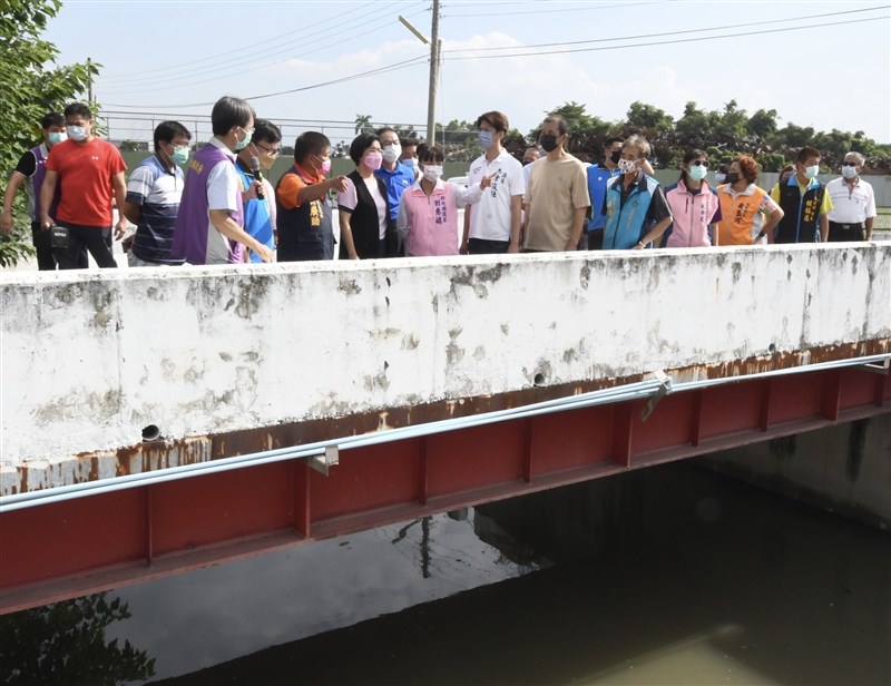 為改善大村排水及護岸等工程,彰化縣長王惠美今天與多位縣議員和村長鄉代至現場視察。圖/林宛諭
