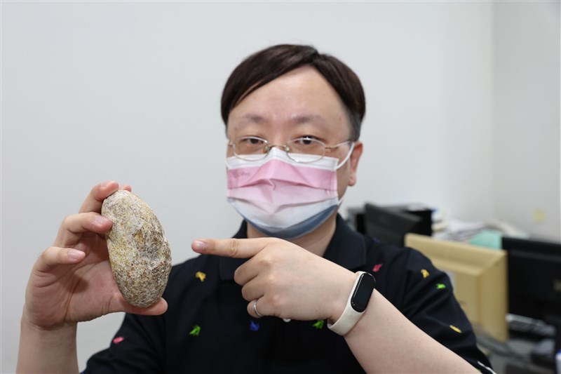 高雄大學副教授鄭竣亦為民眾檢測淨灘拾獲的異香怪石,確定是龍涎香真品。圖 / 高雄大學提供