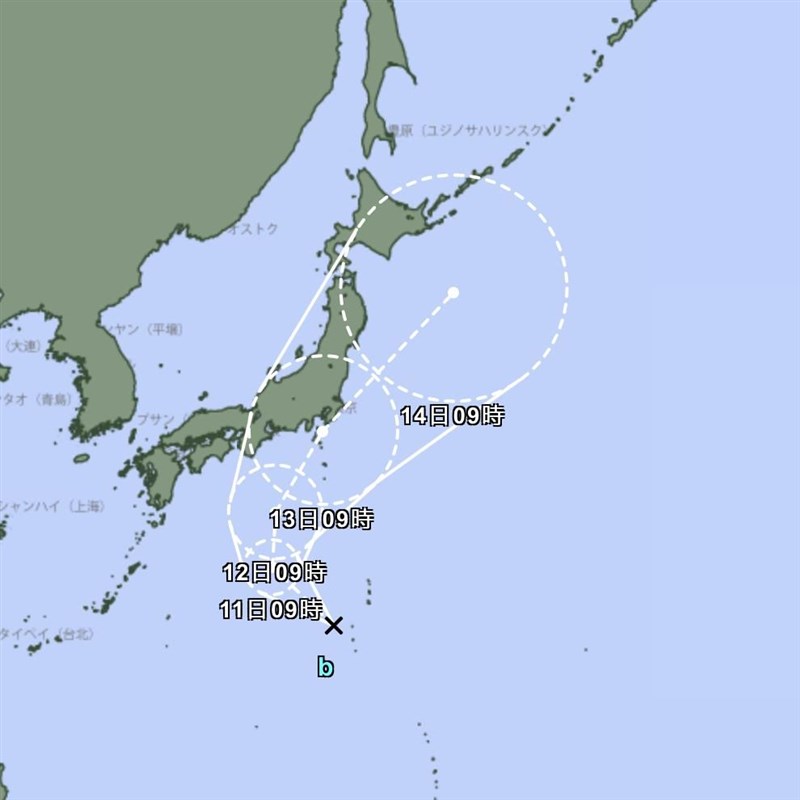 【本報台北訊】根據日本氣象廳資料顯示,日本東南方今天(10日)上午9時有熱帶性低氣壓生成。中央氣象局表示,該系統為在日本南側,未來路徑預估是往日本方向移動,由於強度偏弱,有機會在明日增強為今年第八號颱風「米雷」,由於該熱帶低壓持續遠離台灣,對台灣天氣沒有影響。