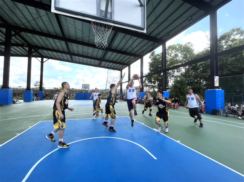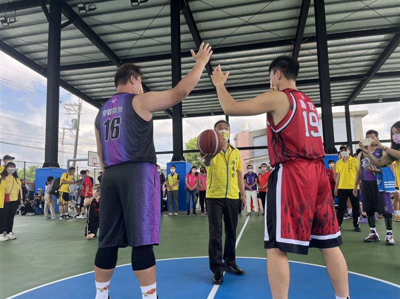 南投竹山首座籃球風雨球場今落成,同步辦理3對3鬥牛友誼賽宣告正式啟用。圖/竹山鎮公所提供