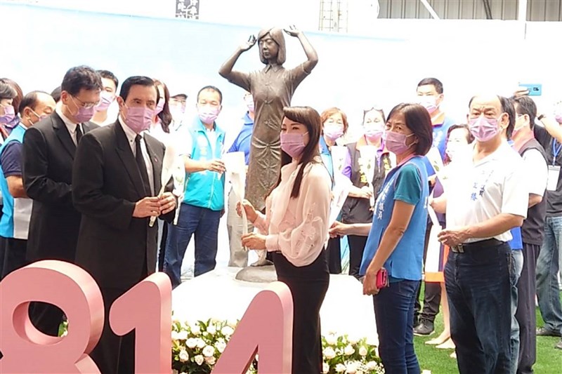 馬英九致詞表示,台南市慰安婦紀念銅像所在地附近有許多日治時期建物,提醒大家記得日本殖民歷史,更不應該忘記日本帶給這些慰安婦阿嬤的傷痛。
