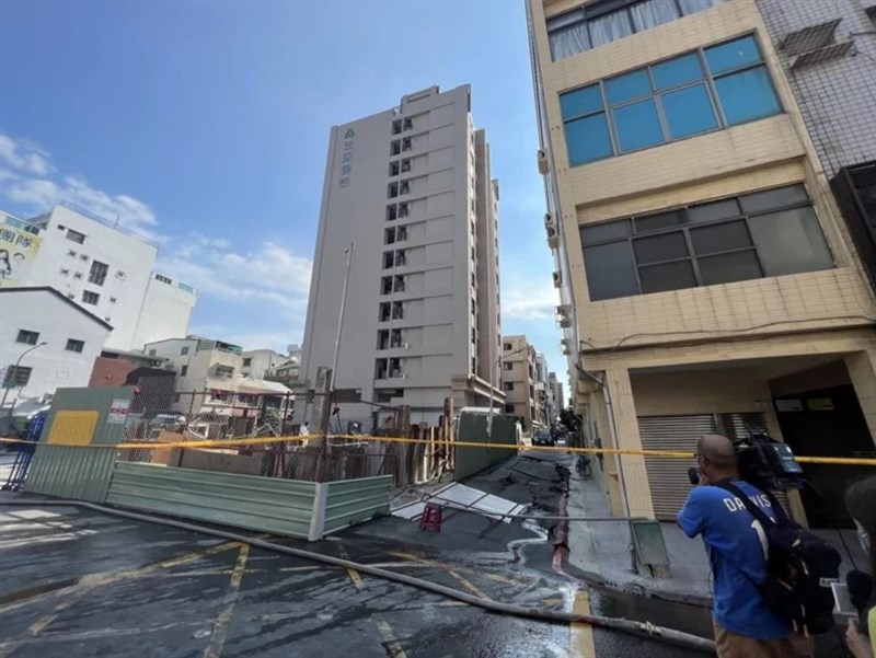 工務局表示,已委由消防局緊急處置,預防土水持續進入基地,避免鄰房持續傾斜,同時啟動應變機制,並派員24小時輪值巡守工地。