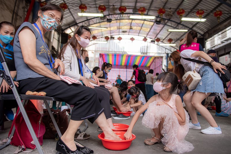 為發揚孝道精神,香火鼎盛的桃園中壢慈惠堂,特別舉辦母娘文化節—報親恩奉粥奉茶洗足活動。圖/桃園市府提供