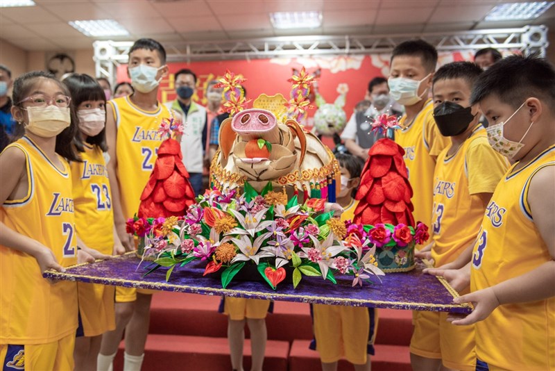 像是今年登場的的創意神豬,就特地邀請中華纏花藝術發展協會四位藝術家組成團隊,發揮客家纏花工藝的好手藝,投入三個多月時間,打造出全台唯一、別出心裁的大型「纏花藝術神豬」,就連神豬旁精緻的康乃馨花朵,也都以手工纏作,令人看得目不轉睛、嘖嘖稱奇。