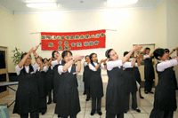 陳宗欽老師精心策畫以成語猜法師、會員及學員名字的聯誼活動,帶領大家腦力激盪,笑聲及掌聲不斷,和樂融融。餘興節目有南二分會合唱及勝鬘書院手語歌唱舞蹈,將佛法與蓮花經由手語結合美妙歌曲,獲得在場觀眾熱烈掌聲。