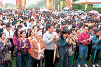 【本報宜蘭訊】宜蘭縣礁溪鄉開成禪寺結合縣內工商業界,昨天籌辦響應二○○八年蘭陽孝親尊師活動,並提前舉辦慶祝佛誕浴佛活動,不少信徒一大早步行朝山,沿路還三步一跪,相當虔誠。