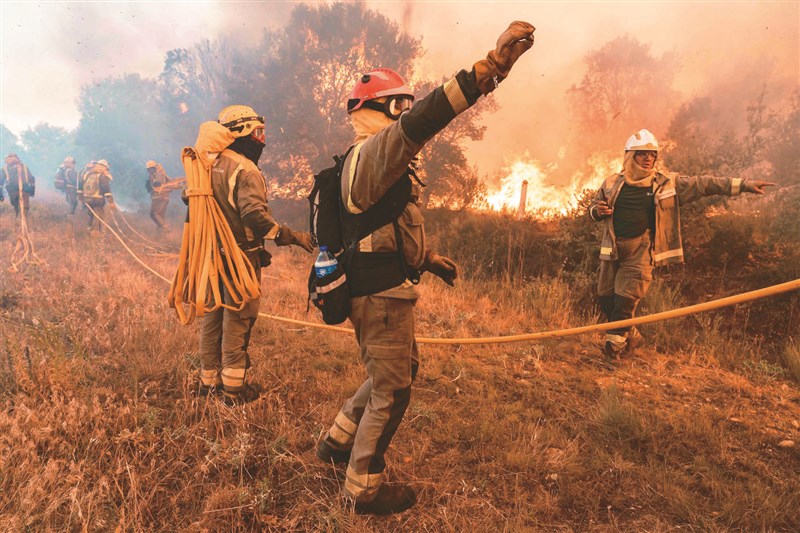 全球樹木遭野火摧毀的面積,是20年前的兩倍。圖為西班牙消防員,正在奮力對抗森林大火。圖/法新社