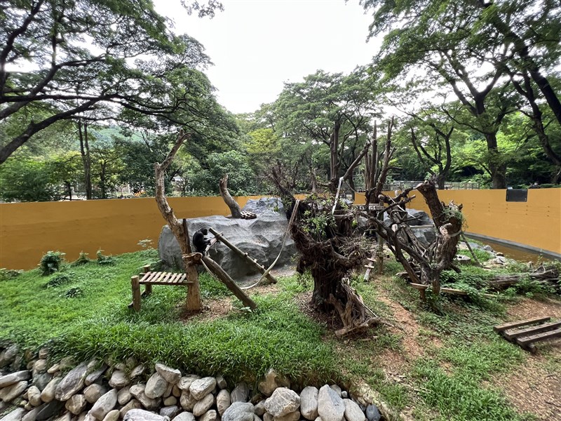特別的是,為了增加猩居的立體空間,園方與內埔農工合作,由師生與園方保育員共同在內舍及外部活動區域的枯樹上構築木架平台及消防水帶網,盼牠們有更舒適的生活空間,也能住得習慣。