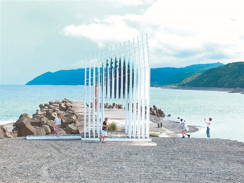 台東縣政府主辦的「2022南迴藝術季」明天登場,今年以「藝術萌生地」為主題,展出8件全新裝置藝術,其中〈1314號的藍〉、〈天空織鏡〉等作品率先曝光,還未正式展出就造成轟動,許多民眾搶先一睹風采,直呼「美爆了」。縣府提醒,勿任意觸碰作品。圖/尤聰光、取自南迴藝術季臉書