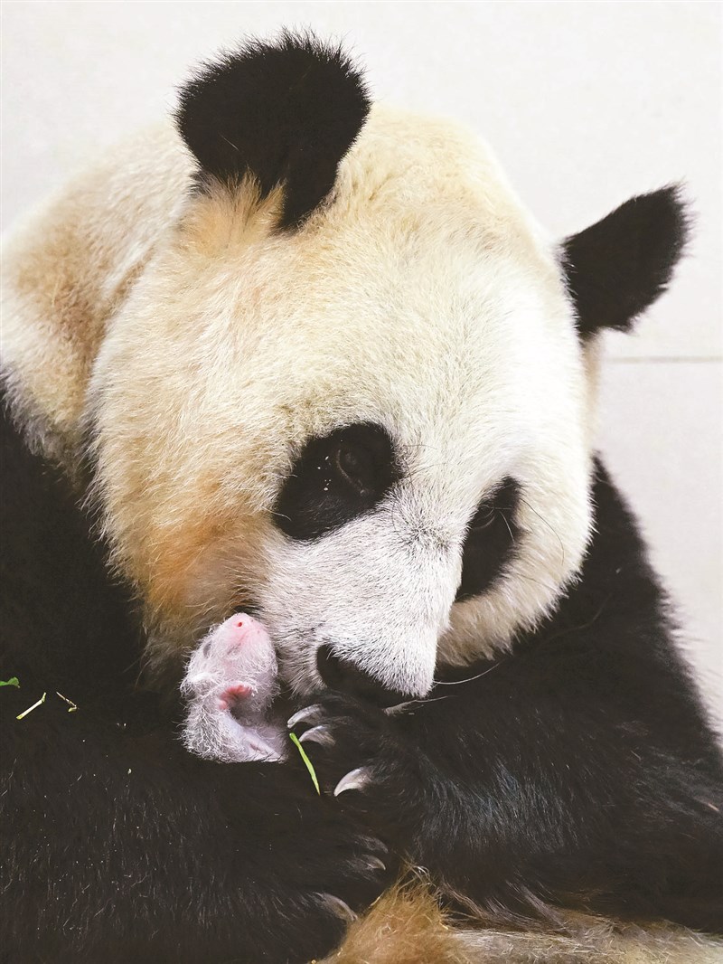 大貓熊「翠翠」日前產下一隻寶寶,體重二百七十點四公克,刷新紀錄。圖/新華社
