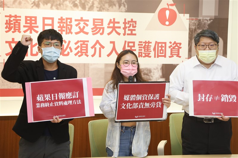 【記者曹麗蕙台北報導】針對蘋果日報交易案,經濟民主連合智庫召集人賴中強等人,今天(25日)在立法院舉行記者會,指買家無權使用蘋果日報網域名稱及會員資料等資訊,呼籲文化部確保媒體個資處理適法性;文化部則表示,已再次發函,要求蘋果日報未經合法授權個資不得移轉他人使用,並要求具體訂定個人資料檔案安全維護計畫,10日內函送文化部。
