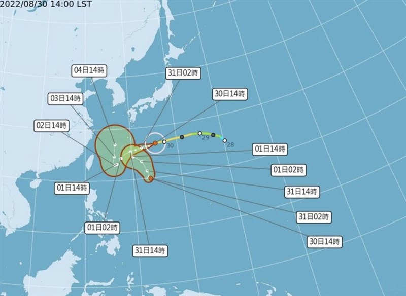 針對颱風路徑,軒嵐諾周三前往西南西前進,周四、五因導引氣流較弱,因此接近琉球附近海面後就會在原處徘徊打轉,預計北轉,不排除有發布海上警報的可能。