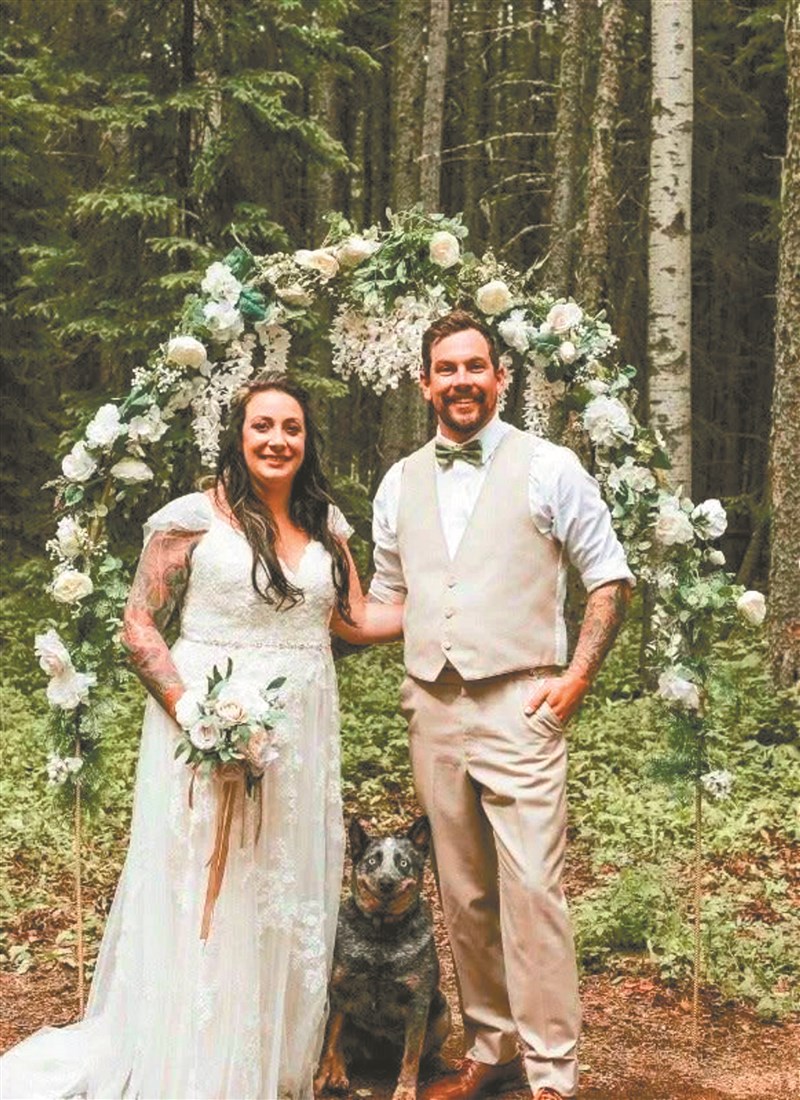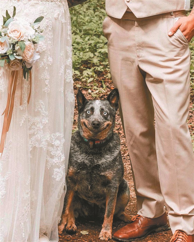 加拿大一對夫妻日前帶著飼養的愛犬「露那」(Luna)一起拍婚紗照,婚攝後來將婚紗照整理好寄給這對夫妻,新娘瓊斯(Callie Jones)發現,自家愛犬露很可能因為拍攝時間太久累了,每一張有牠入鏡的照片,都可看到牠露出「尷尬而不失禮貌的微笑」,讓這對新人忍不住笑翻,照片曝光後吸引不少網友討論。圖/取自sarahpukinphotograp IG