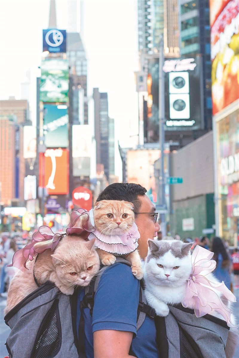 【本報綜合外電報導】留下寵物去旅行是很難的決定。一對紐約市阮姓夫婦則排除萬難帶著他們的三隻貓去世界各地探險。丹.阮和奧莉維亞.阮(Dan & Olivia Nguyen)訓練他們的貓「海綿蛋糕」(Sponge Cake)、「摩卡」(Mocha)和「甜甜圈」(Donut)熱愛戶外,讓牠們在公共場所也感到舒適自在,不會驚竄逃跑,並在IG上記錄他們的無數次旅行,讓這個愛冒險家庭的IG帳戶擁有超過三十三萬名粉絲。