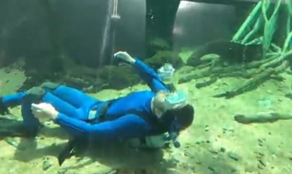 館方人員表示,儘管現在水族館不再飼養招牌動物白鯨,但他們有擁有特殊技能的飼育員可以充當白鯨,「工讀生絕對比白鯨本身精彩,這技能不是每個人都能做得到」。影片曝光後短時間內吸引了超過百萬網友觀看,網友笑翻表示「飼育員看起來好無奈在吐泡泡」、「這比白鯨稀有,我會想去親自朝聖」、「反正都是哺乳類都會吐泡泡,我想飼育員跟白鯨應該沒有什麼差別吧」。