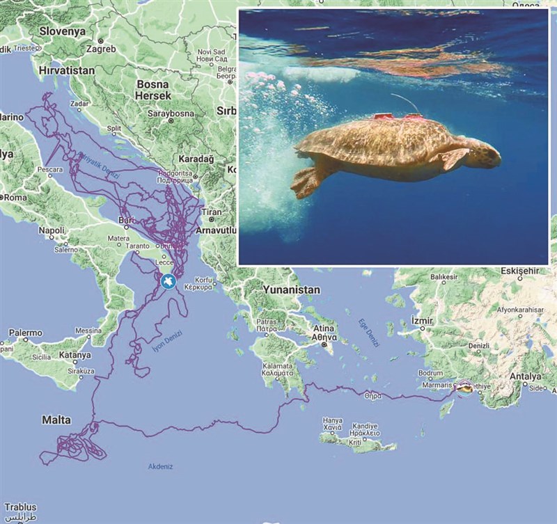 【本報綜合外電報導】土耳其義工三年前為赤蠵龜「圖芭」(Tuba)安裝追蹤設備後,從土耳其西南部木拉省(Mugla)一處海龜保育中心野放。根據最新動態顯示,年紀約二十五至三十歲的圖芭,一路游了一萬七千五百公里到義大利南部的萊切(Lecce)海岸附近。根據土耳其海龜研究暨救援康復中心(DEKAMER)網站,已有七百萬人次瀏覽圖芭動態。