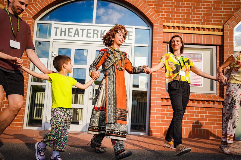 蒂摩爾古薪舞集參加德國杜塞道夫國際舞蹈博覽會,在戶外帶民眾跳排灣族舞蹈。圖/衛武營國家藝術文化中心提供