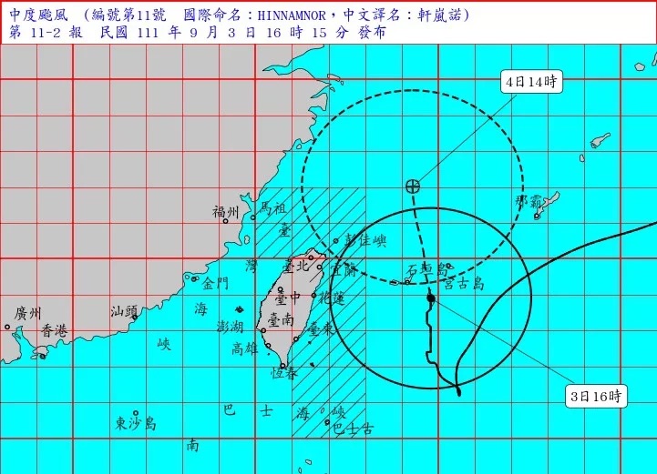 彭啟明說,軒嵐諾颱風目前緩慢搖擺北上,暴風圈將擦過台灣東北角,明天將繼續往北走,但預估在明天下半天會「回春」到強烈颱風等級,預計朝日韓方面前進。