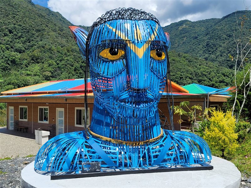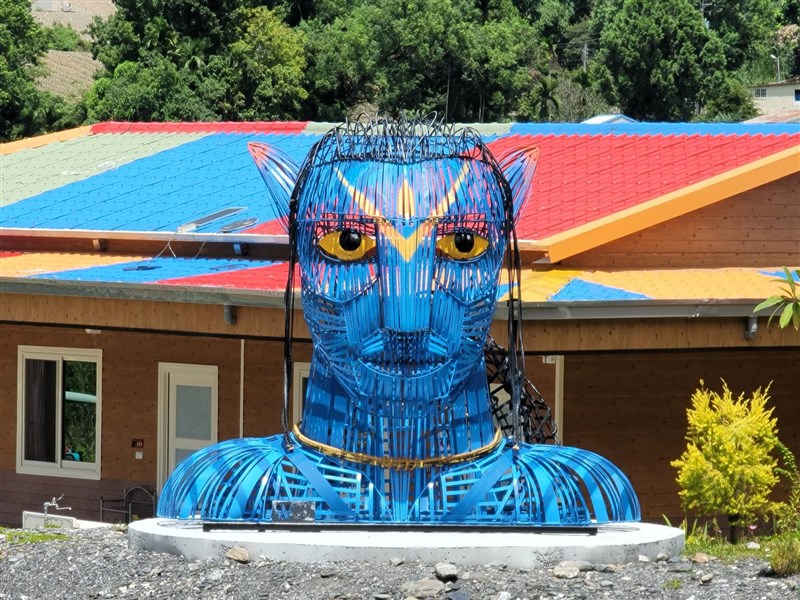 武界部落一處民宿園區內近期出現一座超巨大的半身人形鐵雕裝置藝術,其高度及寬度都超過3公尺,而藍皮尖耳、高挺鼻樑及黃色眼珠,酷似電影《阿凡達》的納美人,因為體積龐大又相當顯眼,吸引不少遊客好奇拍照。