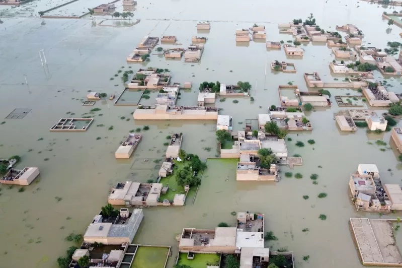 巴基斯坦總理夏立夫(Shehbaz Sharif)7日視察信德省災區,隨後向媒體表示:「你可能不會相信那裡(信德省)遭破壞的範圍有多廣大。放眼所及到處是洪水,就像是一片汪洋。」