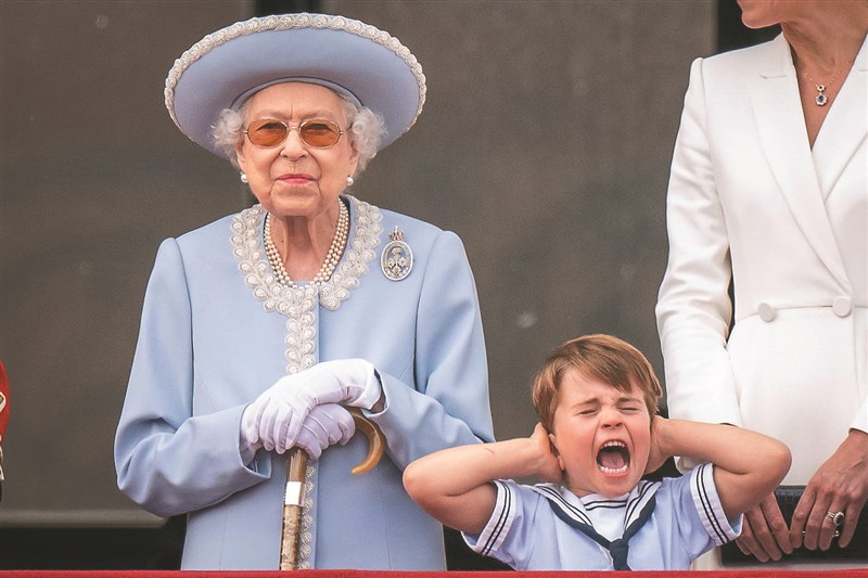 今年6月2日白金禧慶典,女王(左)與曾孫路易王子留下逗趣畫面。圖/美聯社