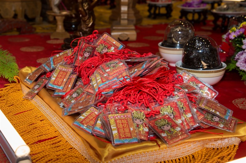 平安符的背面則是今年主祀宮廟南天宮的圖樣,並搭配「海陸巡安、庇佑蘭陽」八個字,以祈願媽祖賜福大眾。南天宮表示,每個平安符袋裡面都裝有一張經媽祖印加持過,可保平安的令符,民眾可於九月十六日到十八日陸巡遶境途中,於平安符發放地點向媽祖誠心祈求來索取、庇佑一整年的平安。