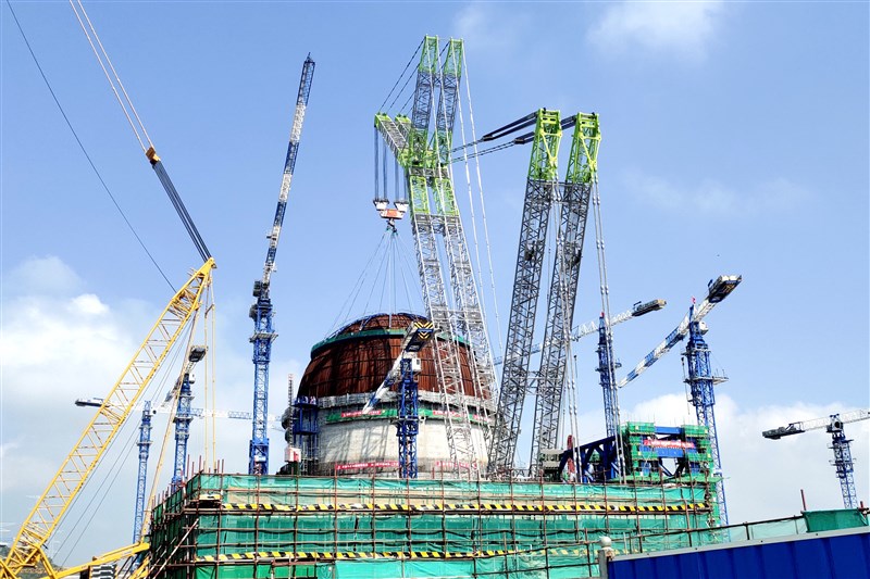 福建漳州核電2號機組內穹頂已成功吊裝,轉入設備安裝階段。圖╱中新社