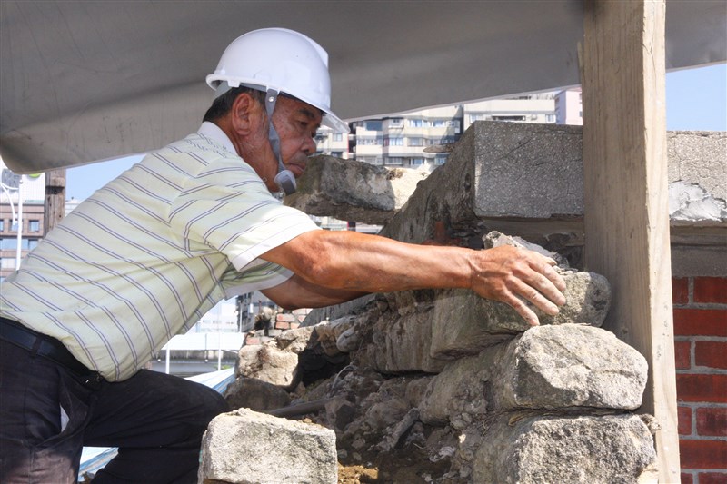 李昆山發揮對材料與工法的專業,讓古蹟依據不同損壞程度來進行適合修復。圖/國立台灣博物館提供