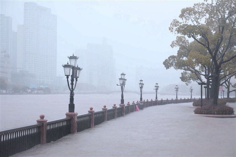 梅花颱風為浙江寧波帶來驚人雨量,河水暴漲。圖╱中新社