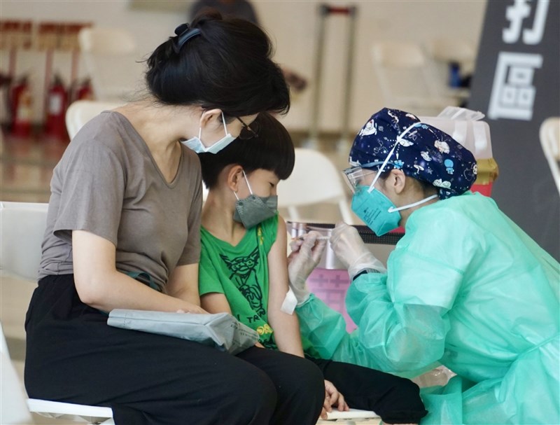 高雄展覽館開設5到11歲兒童疫苗社區接種站,提供輝瑞兒童疫苗,有家長30日帶著孩子前往接種。圖/中央社