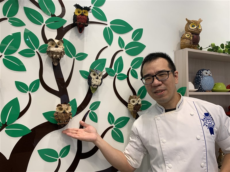 【記者王淑芬高雄報導】2歲就被診斷重度弱視還有色盲,但是李侑昌在學習路上熱情不減,努力朝餐飲興趣發展,大學餐飲系畢業還在藍帶廚藝學院鑽研西點,如願開店並以「貓頭鷹」為識別,他克服視障、販售甜蜜幸福的好滋味,對人生滿懷希望。