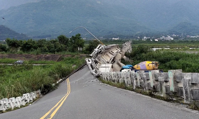 台東縣池上昨天(19日)下午發生6.8強震,造成花蓮多處受災,玉里、富里多處橋梁斷裂,以崙天、高寮大橋斷裂最為嚴重。圖/季相儒