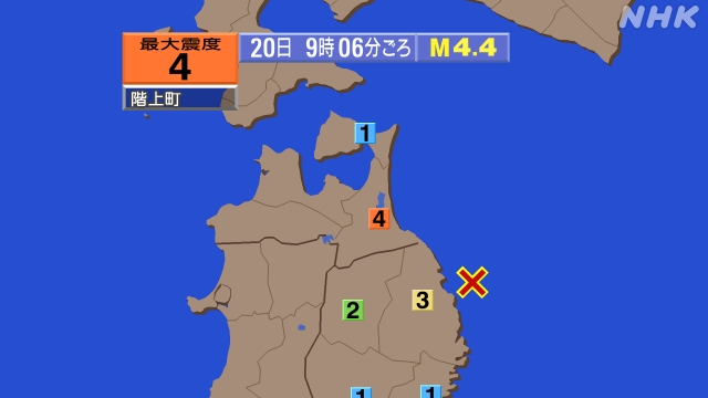 日本放送協會(NHK)報導,青森縣階上町被觀測到最大震度4級,另外在同縣八戶市、南部町,及岩手縣普代村觀測到震度3級。