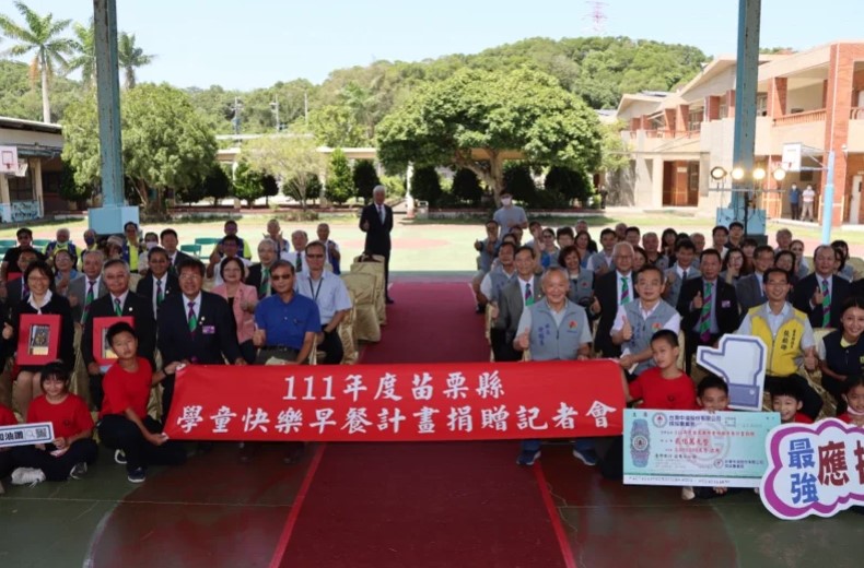 【本報苗栗訊】苗栗縣政府推動「學童快樂早餐計畫」,獲得中油、台電、潤泰集團及國際扶輪社響應,共捐助600萬元,讓縣內偏遠地區弱勢家庭學童有熱騰騰的早餐享用,今天(20日)上午10點,縣府在通霄烏眉國小舉行捐贈儀式,由縣長徐耀昌代表接受捐贈並頒贈感謝獎牌。
