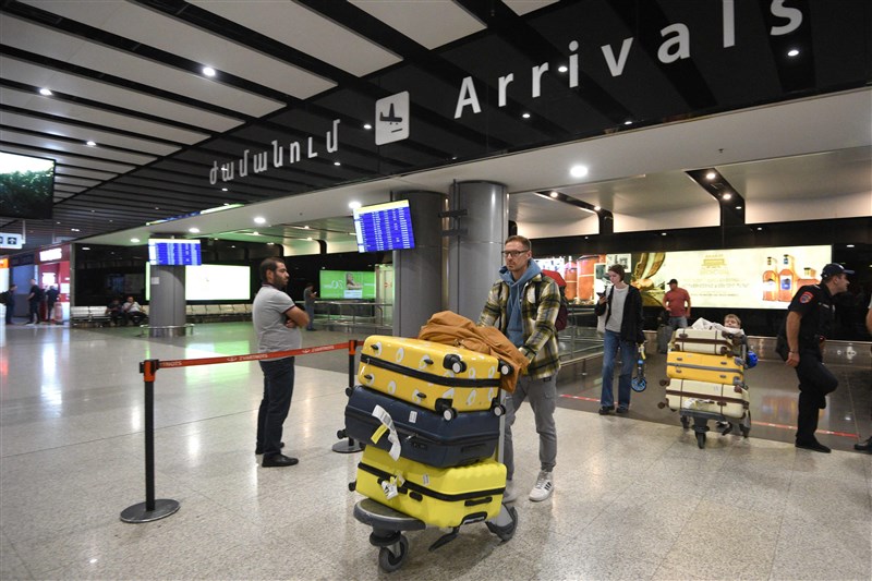 俄羅斯發布局部動員令後,21日從俄羅斯起飛的單程航班迅速售罄。圖╱法新社