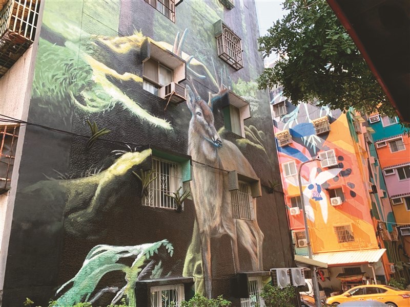 建築牆面就是畫布,森林、海洋等主題讓社區成了觀光熱點。圖/記者王淑芬