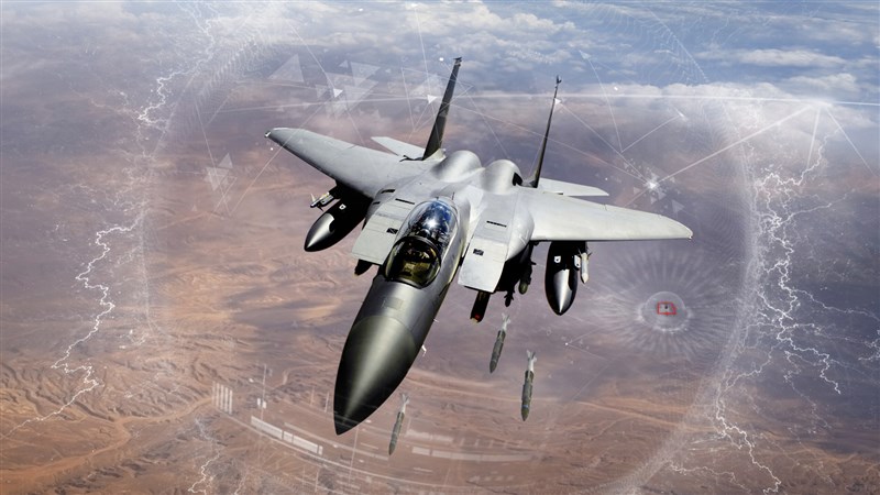 美軍28日緊急出動一架F-15戰機,將伊朗一架無人機擊落,示意圖。圖╱美聯社