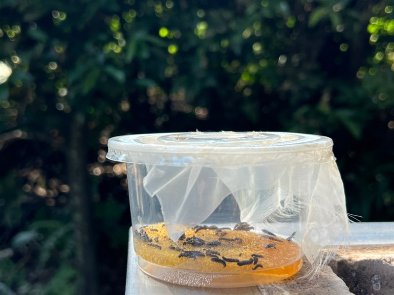 今日於文山農場野放3000隻黑翅螢陸生螢火蟲幼蟲。圖/新北市農業局提供