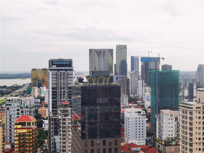 柬埔寨官員稱有10萬人在柬國從事網路賭博工作。圖為柬埔寨首都金邊鑽石島附近建築群。圖╱中新社