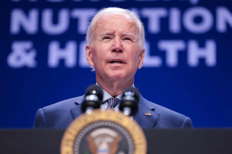 美國總統拜登表示,對普亭宣布併吞烏蘭領土一事美國絕不承認,並說公投全案是「騙局」。圖/法新社