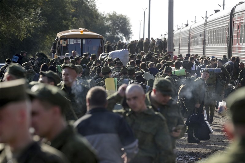 俄羅斯動員徵兵。圖╱美聯社