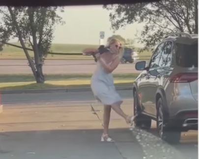 IG artinstic分享一支不可思議「我無法相信我目擊這個」影片,從畫面可以看到,一名身穿白色連身裙的金髮女子自駕賓士,準備到自助加油站內加油,沒想到竟就地演出「人生喜劇」。