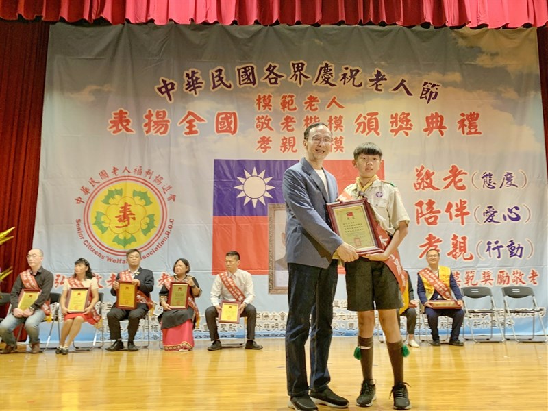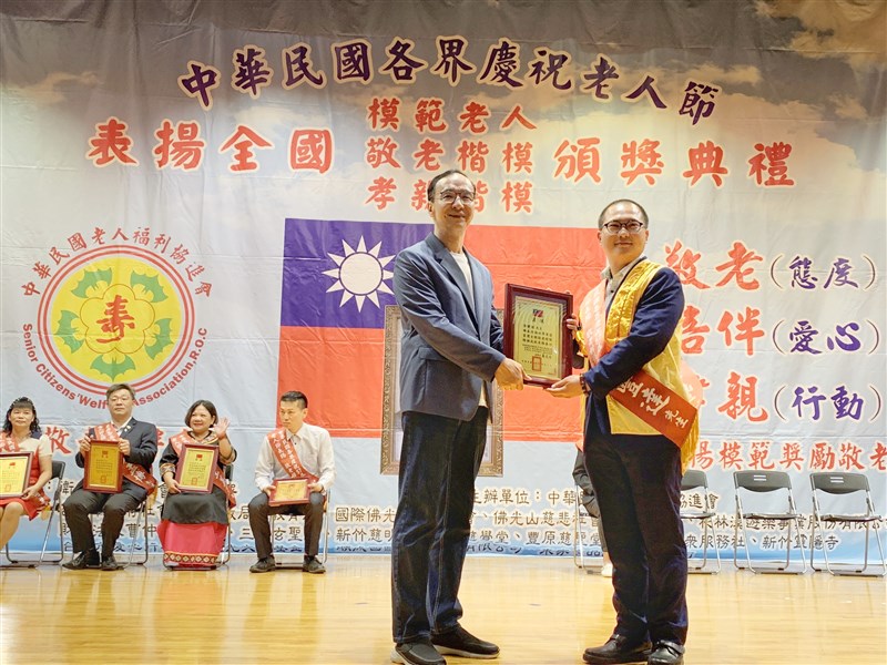 第57屆老人節 5佛光人獲表揚 歷年最多 曹麗蕙 |2022.10.02 語音朗讀 2742觀看次 字級 大 中 小 九九重陽即將到來,為慶祝第57屆老人節,中華民國老人福利協進會今天舉行頒獎典禮,佛光人共有5位獲得殊榮,包括「模範老人」蘇麗玉(中)、胡世銘(右二);「敬老楷模」余玻莉(右)、李豐達(左二);「孝親楷模」林宇晨。圖/記者曹麗蕙 【記者曹麗蕙台北報導】為慶祝第57屆老人節,中華民國老人福利協進會今天(2日)於台鐵大樓6樓演藝廳舉行頒獎典禮,表揚全國模範老人、敬老與孝親楷模。佛光人有5位獲得殊榮,涵蓋老中青三代,一舉橫掃三大獎項,為歷年最多,其中國際佛光會檀講師蘇麗玉、督導胡世銘雙雙榮獲「模範老人」獎。今年主辦單位共選出模範老人23位、敬老楷模17位、孝親楷模2位。佛光會除了蘇麗玉、胡世銘獲選「模範老人」;副督導長余玻莉、會員李豐達更同摘「敬老楷模」殊榮;「孝親楷模」獎則由年僅13歲的佛光童軍林宇晨抱回。國際佛光會檀講師蘇麗玉(右),由衛福部社會及家庭署副署長李臨鳳手中,獲頒「模範老人」獎。圖/國際佛光會中華總會提供蘇麗玉從教職退休,相當重視品德教育,長年舉辦「三好兒童說故事比賽」,隨惠中寺雲水書車深入偏鄉,並積極赴各級校園演講生命教育、前進台中女子監獄弘法等,而榮獲「模範老人」獎。她表示,「感恩大師提倡人間佛教,在生活中實踐三好四給,讓眾生有不斷向上向善的學習機會,同時感謝佛光會、佛光人的集體創作、團結合作的力量,遍灑慈悲智慧的種子。」國際佛光會宜蘭區督導胡世銘榮(右)獲「模範老人」獎,由衛福部社會及家庭署副署長李臨鳳頒獎。圖/國際佛光會中華總會提供由宜蘭市公所推薦的胡世銘同獲「模範老人」榮耀,他因自己也邁入老年,最懂老人需求,以銀髮族角度開辦許多活動,包括長者共餐、走入大自然,也帶領社區發展協會成員參與「銀髮族健康隊」等。他分享,「因為佛陀加持,在佛光會擔任過會長、正副督導長等職位,給我很大加分,才能當選全國模範老人,感謝佛光會的助緣。」國際佛光會高雄第五區副督導長余玻莉當選「敬老楷模」,由中國國民黨主席朱立倫授獎。圖/記者曹麗蕙「孩子和長者之間透過愛的傳遞,提高人與人間的溫度,讓社會變成良善循環,是翻轉生命很重要的過程」。「敬老楷模」余玻莉擔任普賢佛光童軍團團長時,不只規畫小童軍到老信徒家傳達關心與問候,佛寶節時更將臘八粥送至社區獨居長者手中,溫暖他們的心房,並在浴佛節以行動小浴佛車送達長照安養中心,方便行動不便長者浴佛,同霑法喜。余玻莉表示,感謝佛光會和童軍團給予舞台和成長機會:「長輩臉上滿足的微笑,是兩代間互動創造出來的,我心中非常感動。」中國國民黨主席朱立倫頒發「敬老楷模」獎,予國際佛光會苗栗第二分會會員李豐達(右)。圖/記者曹麗蕙李豐達由台灣公益廚師協會推薦,也當選「敬老楷模」。為滿父母的願,他放棄台北高薪飯店工作,回故鄉苗栗開立「一心素食」,力挺協會赴全台據點服務,參與「e起復蔬」,推出愛心、待用餐等,並常到安養院義煮,服務社區長者、獨居長者團膳。他表示,「很榮幸獲選,未來也會多多行善,將佛光精神發揚到全世界。」「孝親楷模」獎由年僅13歲的佛光童軍林宇晨(右)抱回。圖/記者曹麗蕙「服務長輩我很開心,因為服務為快樂之本。」「孝親楷模」獎得主、13歲的林宇晨,不僅在家孝順父母,也常攜手母親李秋燕在假日為社區長者做資源回收,歡喜參與惠中寺寒冬送暖活動,並在重陽節時協助長輩領取搬提物資、操作3C手機等,「感謝家人讓我參加佛光童軍團,我才能獲得這個獎。」今天頒獎典禮共有逾300人與會,總統蔡英文、副總統賴清德等都特別捎來賀電嘉勉,中國國民黨主席朱立倫也親自出席。中華民國老人福利協進會理事長高火生致詞時表示,今年活動邁入第57屆,迄今已有3796位獲獎,「得獎者的典範事蹟都是優質的生命故事,能給予年輕人好榜樣和啟發。」今年佛光人有5位獲得殊榮,涵蓋老中青三代,包括林宇晨(左起)、余玻莉、蘇麗玉、胡世銘、李豐達。圖/記者曹麗蕙 衛福部社會及家庭署副署長李臨鳳指出,台灣將在2026年進入超高齡社會(65歲以上人口占總人口比率達20%),屆時每五人之中就有一位是高齡人口,中央部會也因應超高齡社會提出一些相關方案,未來四年各部會加總的經費逾一千兩百億,希望為長輩打造更好友善環境,讓長輩健康安老。她也透露,今年台灣百歲人瑞共有5076人,其中男性2081人,最高齡113歲;女性有2955人,最高齡117歲,是台灣生活健康水準的見證。 前一篇文章 徵兵及齡男子人數僅11.8萬人 近10年新低 下一篇文章 全球首創佛光雲宇宙 開啟沉浸式修持體驗 熱門新聞 01與精品品牌撞鞋 印度涼鞋打專利戰2025.12.2102佛光山高雄佛教堂 營建工地評鑑特優2025.12.1903銀杏點亮.東京印象2025.12.2304太陽瓶燈泡 點亮貧困家庭希望 2025.12.1905邂逅佛教 安頓身心2025.12.2106【動物奧斯卡獎】猜猜誰最會演(上)2025.12.2107【時光重逢】花宅海邊美術館2025.12.1908北島佛光山獲四星肯定 園林躍升具重要意義庭園2025.12.1909日球星率道奇連霸 2025體壇最驚奇 2025.12.1910社論--瞋恨的危害2025.12.21 訂閱電子報 台北市 天氣預報 台灣一週天氣預報 相關報導 台電2026招考 起薪逾4萬元最強戰車上街頭 M1A2T首次戰備偵巡中選會主委 政院